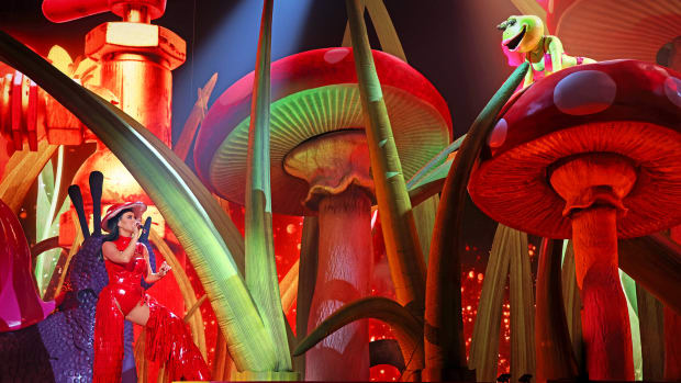 The set for the show featured a hyper-saturated, oversized set that was inspired by ‘80s classics “Honey, I Shrunk the Kids,” “Pee-wee's Playhouse,” and “Pee-wee's Big Adventure.” (Perry has always had an adolescent undercurrent in her work; even her most ribald songs feel very PG-13 compared to what Gaga can get up to.)