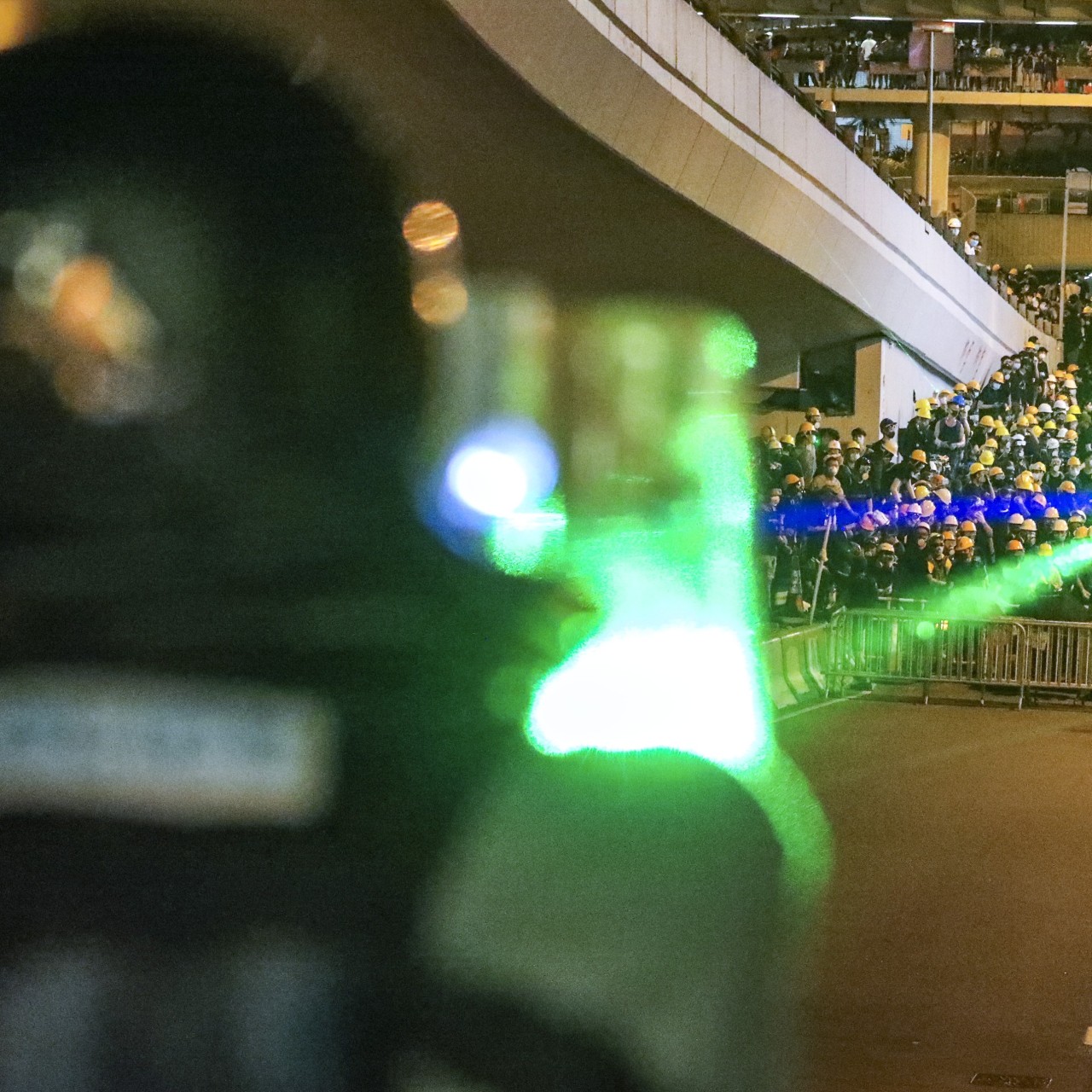 Police have hit out repeatedly at protesters for pointing laser beams at the eyes of officers during recent protests.