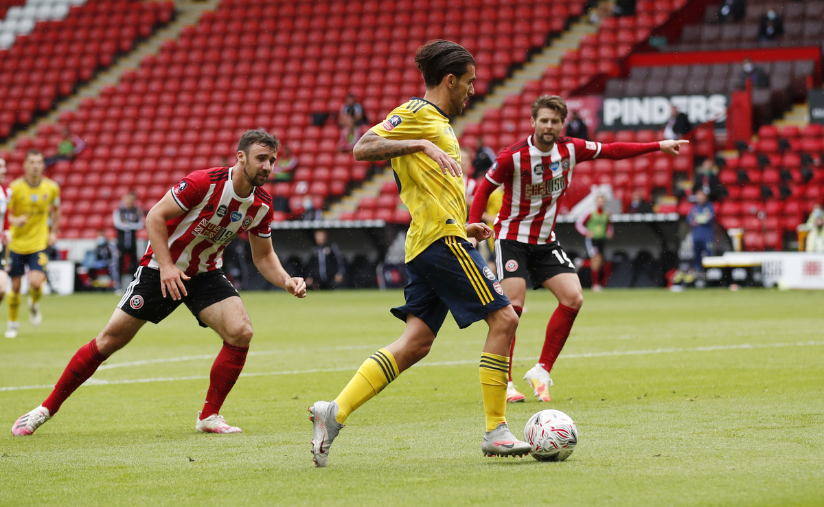 Soccer Football - FA Cup - Quarter Final - Sheffield United v Arsenal - Bramall Lane, Sheffield, Britain - June 28, 2020 Arsenal's Dani Ceballos scores their second goal, as play resumes behind closed doors following the outbreak of the coronavirus disease (COVID-19) REUTERS / Andrew Boyers / Pool