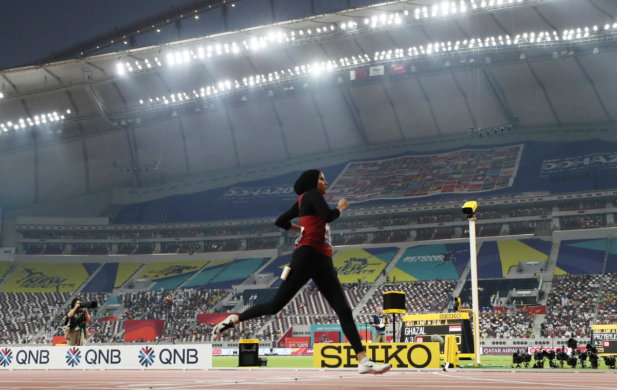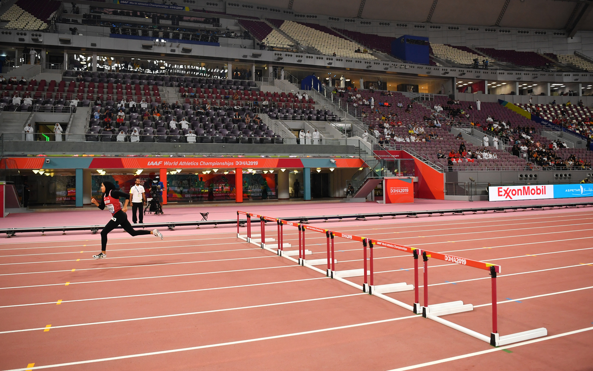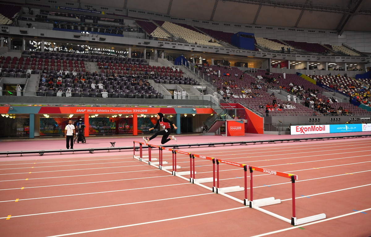 DOHA (Reuters) - When Qatari hurdler Mariam Mamdouh Farid crossed the finish line more than 15 seconds after the winner in her heat, the sparse crowd at Khalifa International Stadium cheered as if she had put on a podium performance.