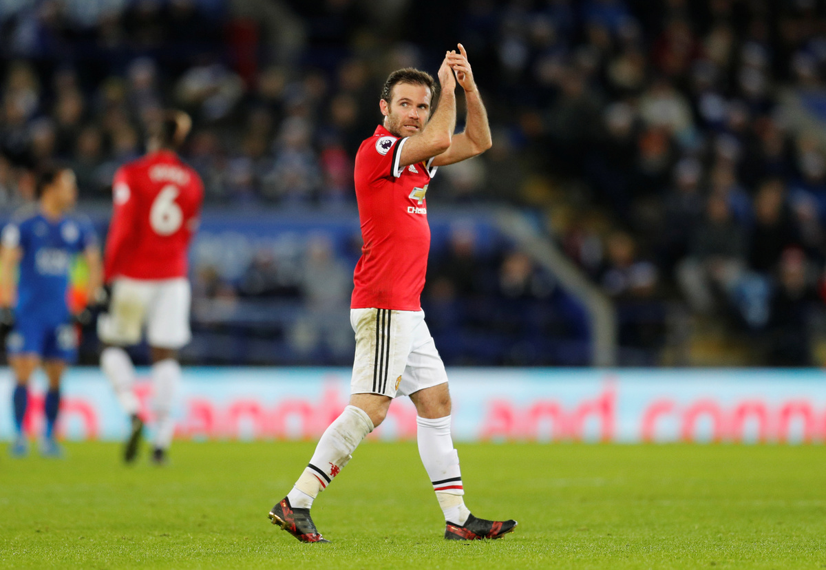 Soccer Football - Premier League - Leicester City vs Manchester United - King Power Stadium, Leicester, Britain - December 23, 2017 Manchester United's Juan Mata applauds the fans after being substituted REUTERS/Darren Staples