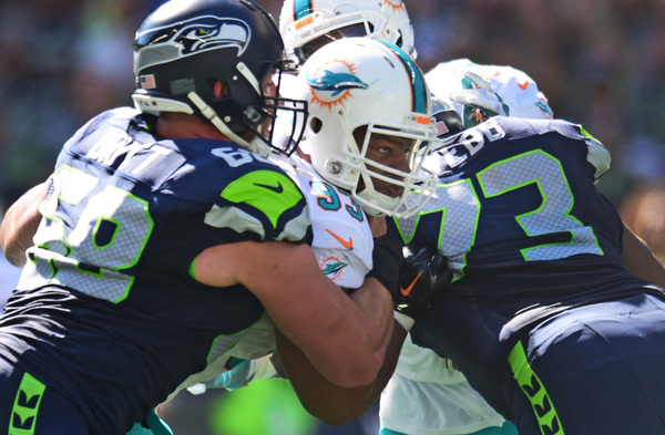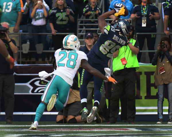 Wilson hit Doug Baldwin with a 2-yard touchdown with 31 seconds left to cap a 75-yard drive that began after Miami had scored its only touchdown to take its only lead of the day.