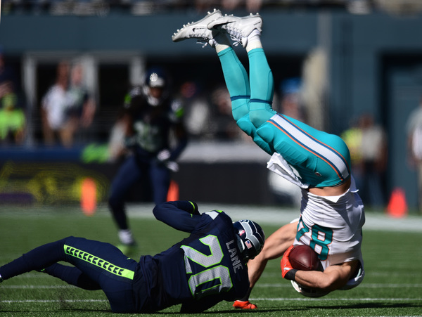 Nerves were heightened throughout the second half after Wilson suffered an apparent right ankle injury when he was sacked by Miami's Ndamukong Suh early in the third quarter.