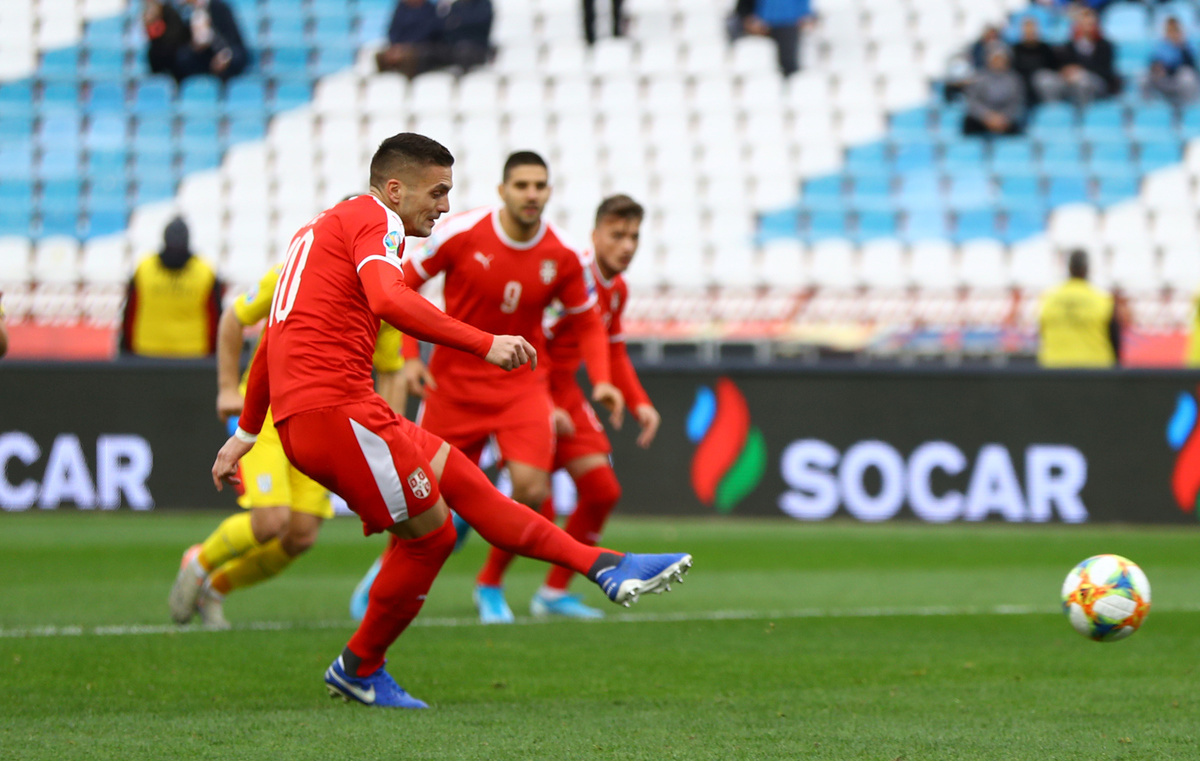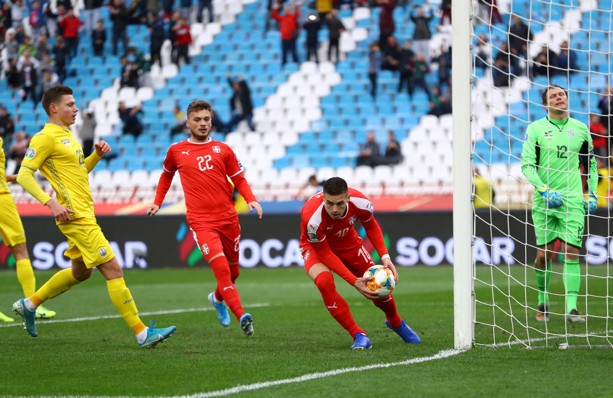Soccer Football - Euro 2020 Qualifier - Group B - Serbia v Ukraine - Rajko Mitic Stadium, Belgrade, Serbia - November 17, 2019 Serbia's Aleksandar Mitrovic in action with Ukraine's Sergey Krivtsov REUTERS/Marko DjuricaSoccer Football - Euro 2020 Qualifier - Group B - Serbia v Ukraine - Rajko Mitic Stadium, Belgrade, Serbia - November 17, 2019 Serbia's Aleksandar Mitrovic celebrates scoring their second goal REUTERS/Marko DjuricaSoccer Football - Euro 2020 Qualifier - Group B - Serbia v Ukraine - Rajko Mitic Stadium, Belgrade, Serbia - November 17, 2019 Serbia's Dusan Tadic scores their first goal from the penalty spot REUTERS/Marko DjuricaSoccer Football - Euro 2020 Qualifier - Group B - Serbia v Ukraine - Rajko Mitic Stadium, Belgrade, Serbia - November 17, 2019 Serbia's Nemanja Radonjic in action with Ukraine's Vitaliy Mykolenko REUTERS/Marko DjuricaSoccer Football - Euro 2020 Qualifier - Group B - Serbia v Ukraine - Rajko Mitic Stadium, Belgrade, Serbia - November 17, 2019 Serbia's Nemanja Radonjic in action with Ukraine's Vitaliy Mykolenko REUTERS/Marko DjuricaSoccer Football - Euro 2020 Qualifier - Group B - Serbia v Ukraine - Rajko Mitic Stadium, Belgrade, Serbia - November 17, 2019 Serbia's Dusan Tadic celebrates scoring their first goal from the penalty spot REUTERS/Marko Djurica