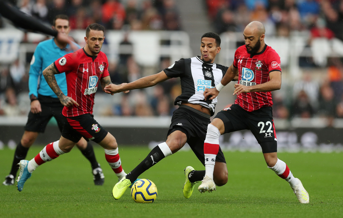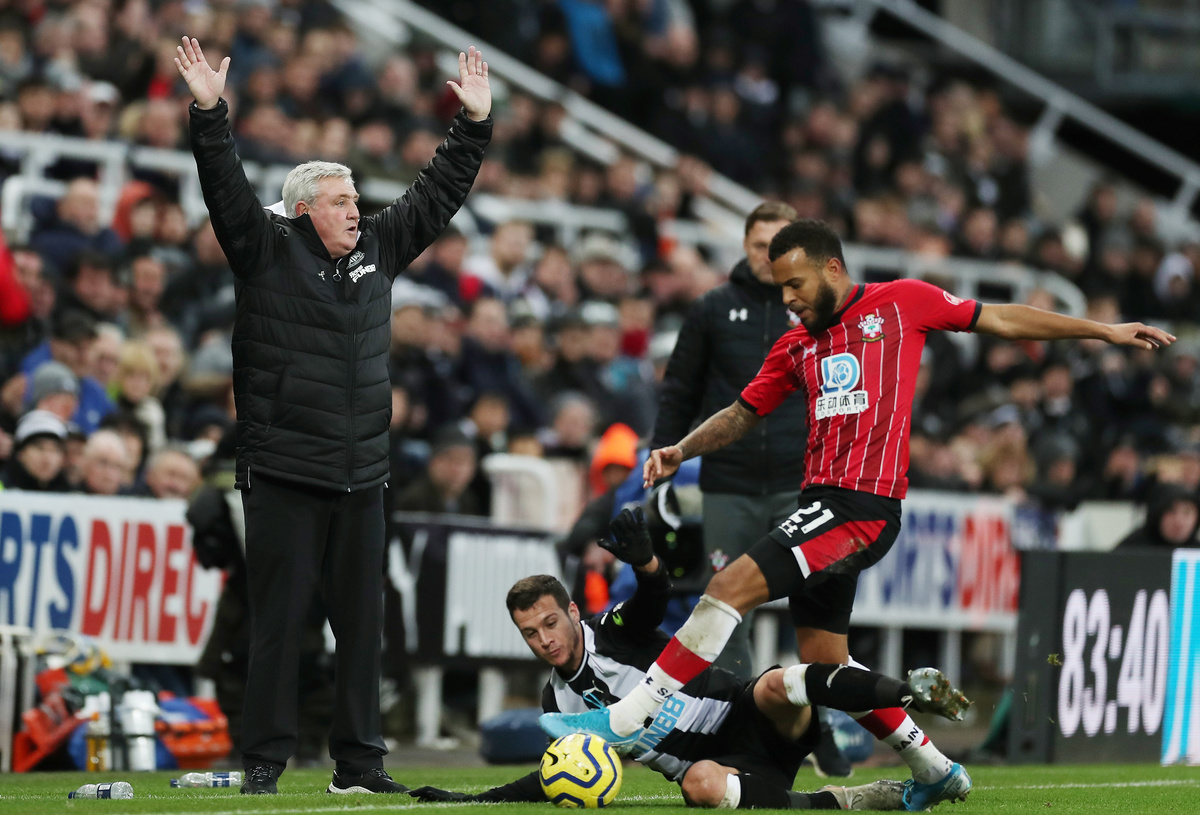 Soccer Football - Premier League - Newcastle United v Southampton - St James' Park, Newcastle, Britain - December 8, 2019 Newcastle United manager Steve Bruce and Southampton manager Ralph Hasenhuttl REUTERS/Scott Heppell Soccer Football - Premier League - Newcastle United v Southampton - St James' Park, Newcastle, Britain - December 8, 2019 Newcastle United's Jonjo Shelvey scores their first goal Action Images via Reuters/Lee Smith Soccer Football - Premier League - Newcastle United v Southampton - St James' Park, Newcastle, Britain - December 8, 2019 Newcastle United's Jonjo Shelvey scores their first goal Action Images via Reuters/Lee SmithSoccer Football - Premier League - Newcastle United v Southampton - St James' Park, Newcastle, Britain - December 8, 2019 Newcastle United's Ciaran Clark in action with Southampton's Danny Ings and Cedric Soares Action Images via Reuters/Lee Smith Soccer Football - Premier League - Newcastle United v Southampton - St James' Park, Newcastle, Britain - December 8, 2019 Newcastle United's Allan Saint-Maximin in action with Southampton's Pierre-Emile Hojbjerg, Nathan Redmond and Cedric Soares REUTERS/Scott Heppell Soccer Football - Premier League - Newcastle United v Southampton - St James' Park, Newcastle, Britain - December 8, 2019 Southampton's Danny Ings in action with Newcastle United's Isaac Hayden REUTERS/Scott Heppell Soccer Football - Premier League - Newcastle United v Southampton - St James' Park, Newcastle, Britain - December 8, 2019 Newcastle United's Isaac Hayden in action with Southampton's Nathan Redmond Action Images via Reuters/Lee Smith