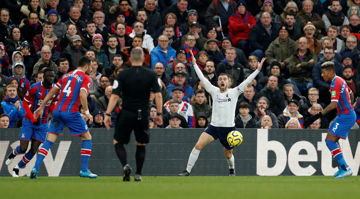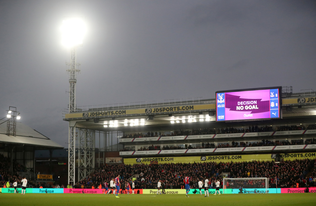 Jordan Ayew and Gary Cahill missed chances for Palace before the home side had a 43rd-minute effort ruled out by VAR, the replay showing Ayew had pushed Dejan Lovren before James Tomkins headed the ball in at the far post.