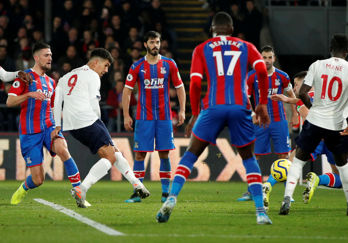 LONDON (Reuters) - Liverpool continued a seemingly relentless push for their first league title since 1990 after a late goal by Roberto Firmino gave them a scrappy 2-1 win at Crystal Palace on Saturday.