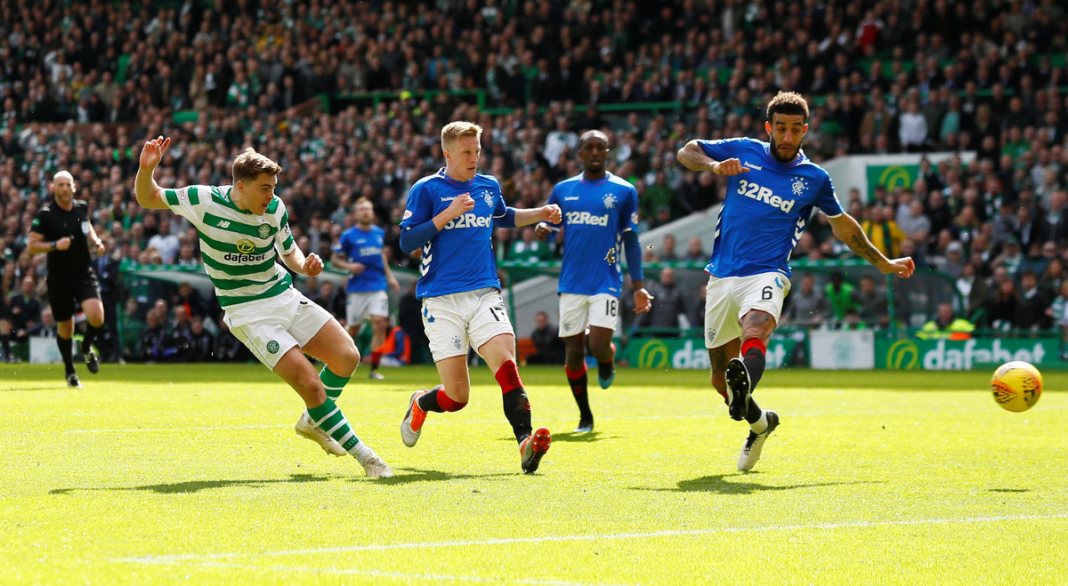 Soccer Football - Scottish Premiership - Celtic v Rangers - Celtic Park, Glasgow, Britain - March 31, 2019 Celtic's James Forrest scores their second goal Action Images via Reuters/Jason Cairnduff