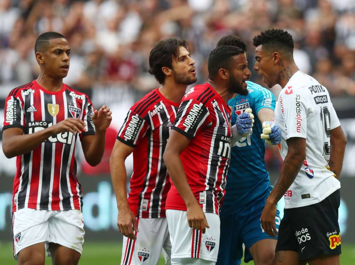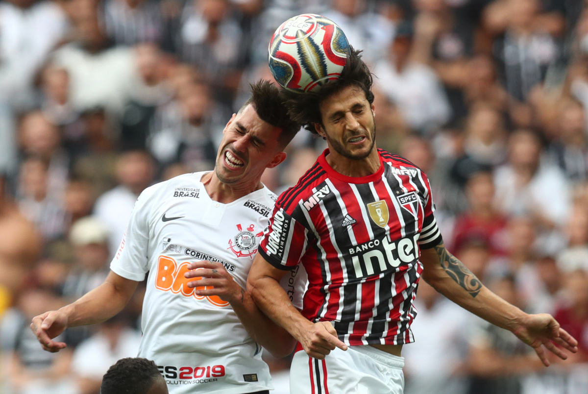 Paulista Championship - Final - Corinthians v Sao Paulo - Arena Corinthians, Sao Paulo, Brazil - April 21, 2019 Corinthians' Danilo celebrates scoring their first goal REUTERS/Nacho DocePaulista Championship - Final - Corinthians v Sao Paulo - Arena Corinthians, Sao Paulo, Brazil - April 21, 2019 Corinthians' Danilo Avelar in action with Sao Paulo's Hudson REUTERS/Amanda PerobelliPaulista Championship - Final - Corinthians v Sao Paulo - Arena Corinthians, Sao Paulo, Brazil - April 21, 2019 Danilo Avelar celebrates scoring their first goal REUTERS/Amanda PerobelliPaulista Championship - Final - Corinthians v Sao Paulo - Arena Corinthians, Sao Paulo, Brazil - April 21, 2019 Corinthians fans during the match REUTERS/Amanda PerobelliPaulista Championship - Final - Corinthians v Sao Paulo - Arena Corinthians, Sao Paulo, Brazil - April 21, 2019 Corinthians fasn before the match REUTERS/Amanda PerobelliPaulista Championship - Final - Corinthians v Sao Paulo - Arena Corinthians, Sao Paulo, Brazil - April 21, 2019 Corinthians' Gustavo clashes with Sao Paulo's Reinaldo REUTERS/Amanda PerobelliPaulista Championship - Final - Corinthians v Sao Paulo - Arena Corinthians, Sao Paulo, Brazil - April 21, 2019 Corinthians fans during the match REUTERS/Amanda Perobelli