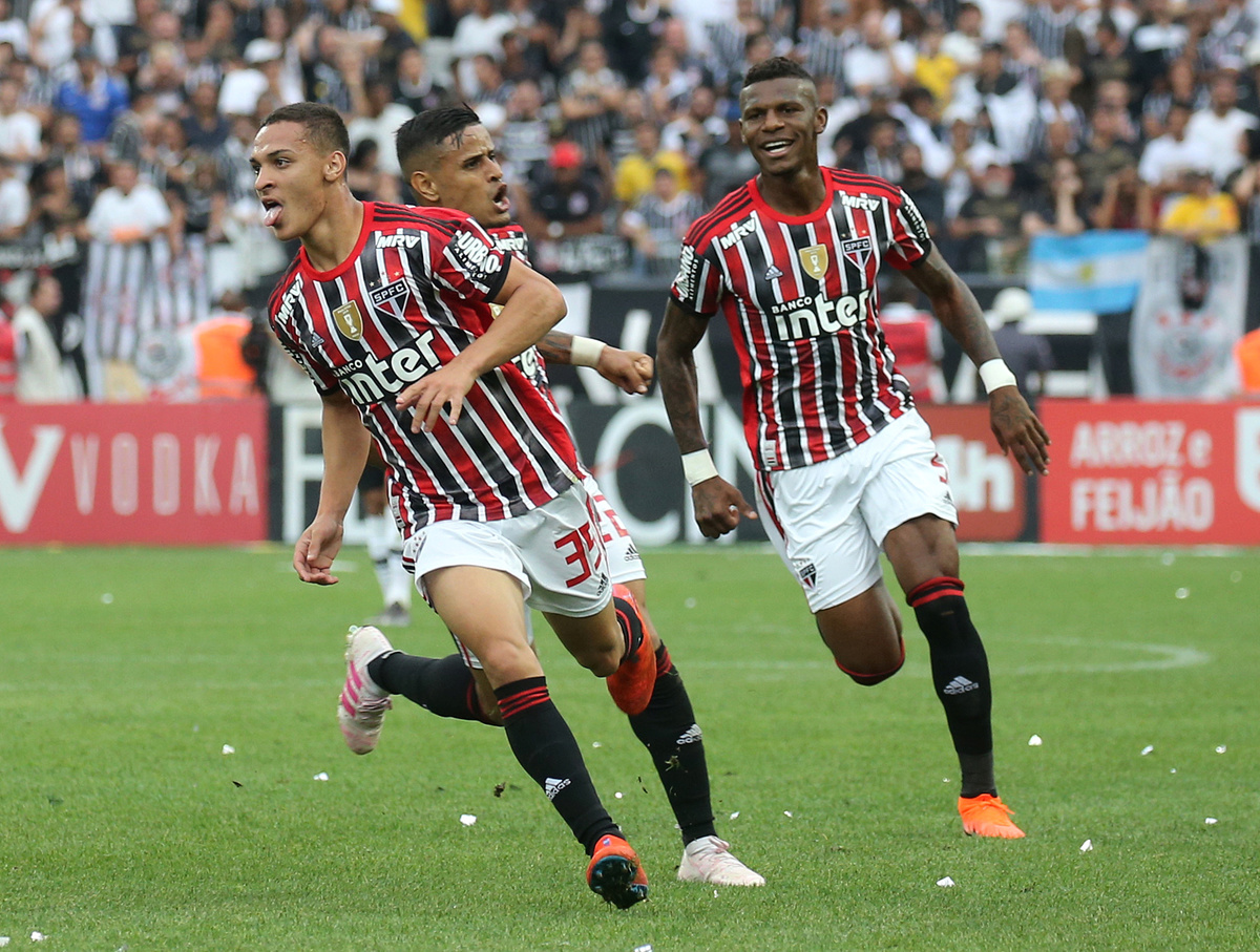 Paulista Championship - Final - Corinthians v Sao Paulo - Arena Corinthians, Sao Paulo, Brazil - April 21, 2019 Sao Paulo's Antony celebrates scoring their first goal REUTERS/Nacho Doce