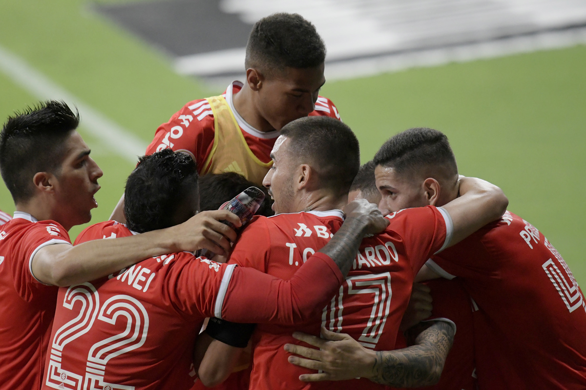 Soccer Football - Brasileiro Championship - Atletico Mineiro v Internacional - Mineirao stadium, Belo Horizonte, Brazil - December 6, 2020 Internacional's Peglow celebrates scoring their second goal with teammates REUTERS/Washington Alves