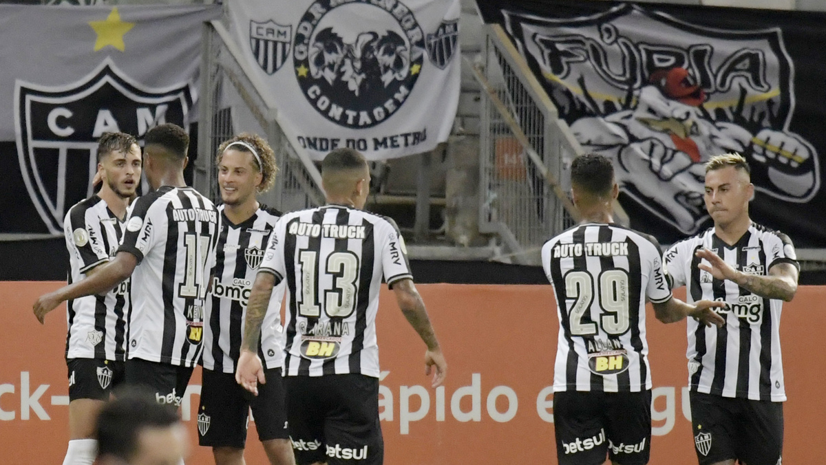 Soccer Football - Brasileiro Championship - Atletico Mineiro v Internacional - Mineirao stadium, Belo Horizonte, Brazil - December 6, 2020 Atletico Mineiro's Hyoran celebrates scoring their second goal with teammates REUTERS/Washington Alves