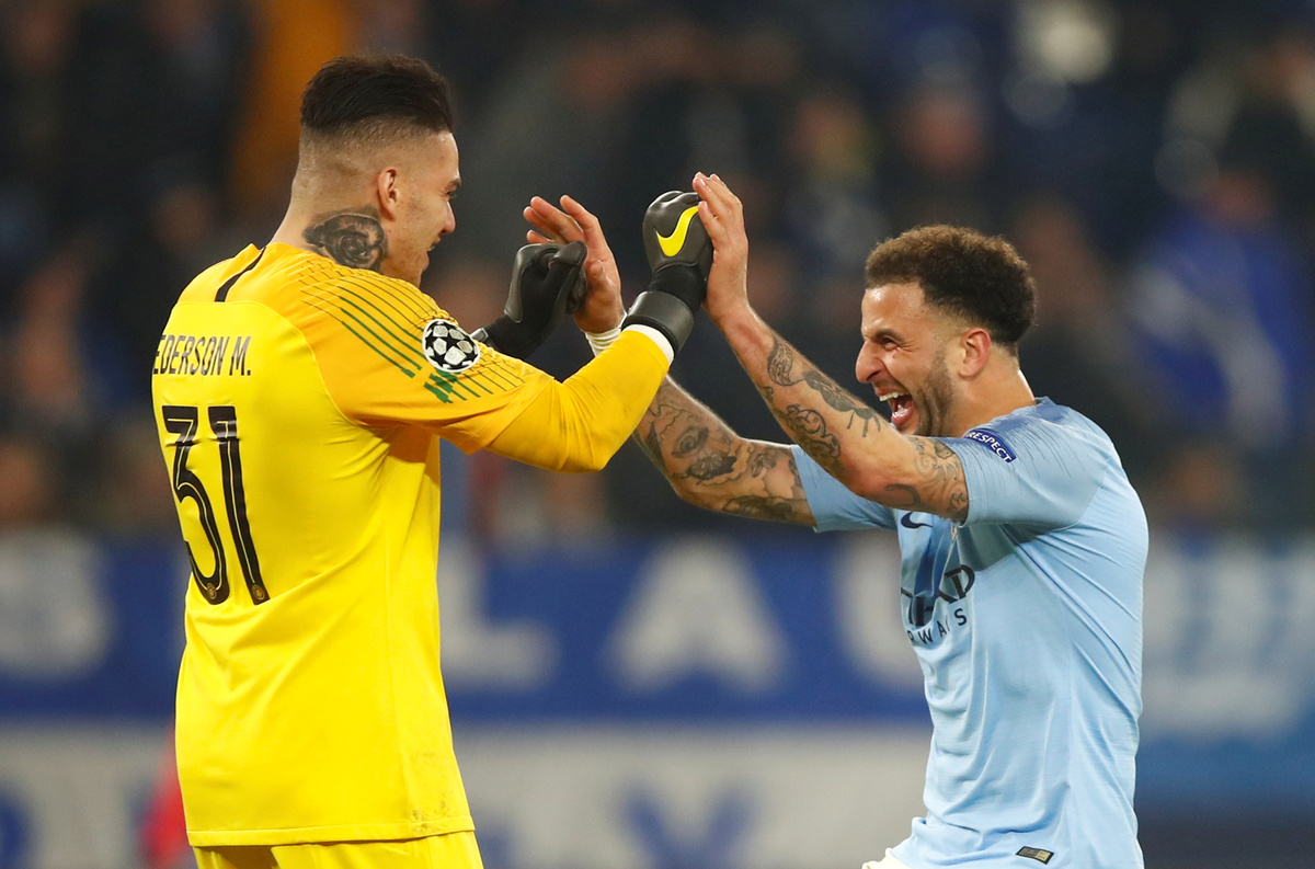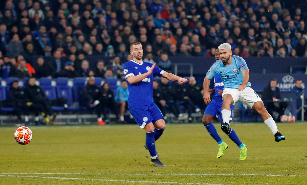 GELSENKIRCHEN, Germany (Reuters) - Ten-man Manchester City staged a dramatic comeback with late goals from Leroy Sane and Raheem Sterling securing them a 3-2 win at Schalke 04 in their Champions League Round of 16 first leg on Wednesday that put the English side in the driving seat.
