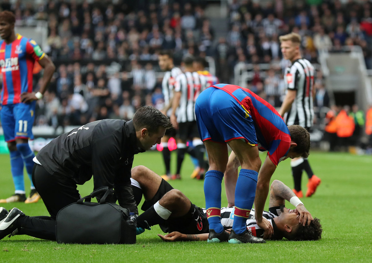 Soccer Football - Premier League - Newcastle United vs Crystal Palace - St James' Park, Newcastle, Britain - October 21, 2017 Crystal Palace's Yohan Cabaye in action REUTERS/Scott Heppell Soccer Football - Premier League - Newcastle United vs Crystal Palace - St James' Park, Newcastle, Britain - October 21, 2017 Newcastle United's Joselu in action with Crystal Palace's Joel Ward Action Images via Reuters/Lee SmithSoccer Football - Premier League - Newcastle United vs Crystal Palace - St James' Park, Newcastle, Britain - October 21, 2017 Crystal Palace's Yohan Cabaye checks on Newcastle United's DeAndre Yedlin who is receiving treatment after after a foul REUTERS/Scott Heppell Soccer Football - Premier League - Newcastle United vs Crystal Palace - St James' Park, Newcastle, Britain - October 21, 2017 Newcastle United manager Rafael Benitez and Crystal Palace manager Roy Hodgson as Crystal Palace's Patrick van Aanholt takes a throw in REUTERS/Scott Heppell