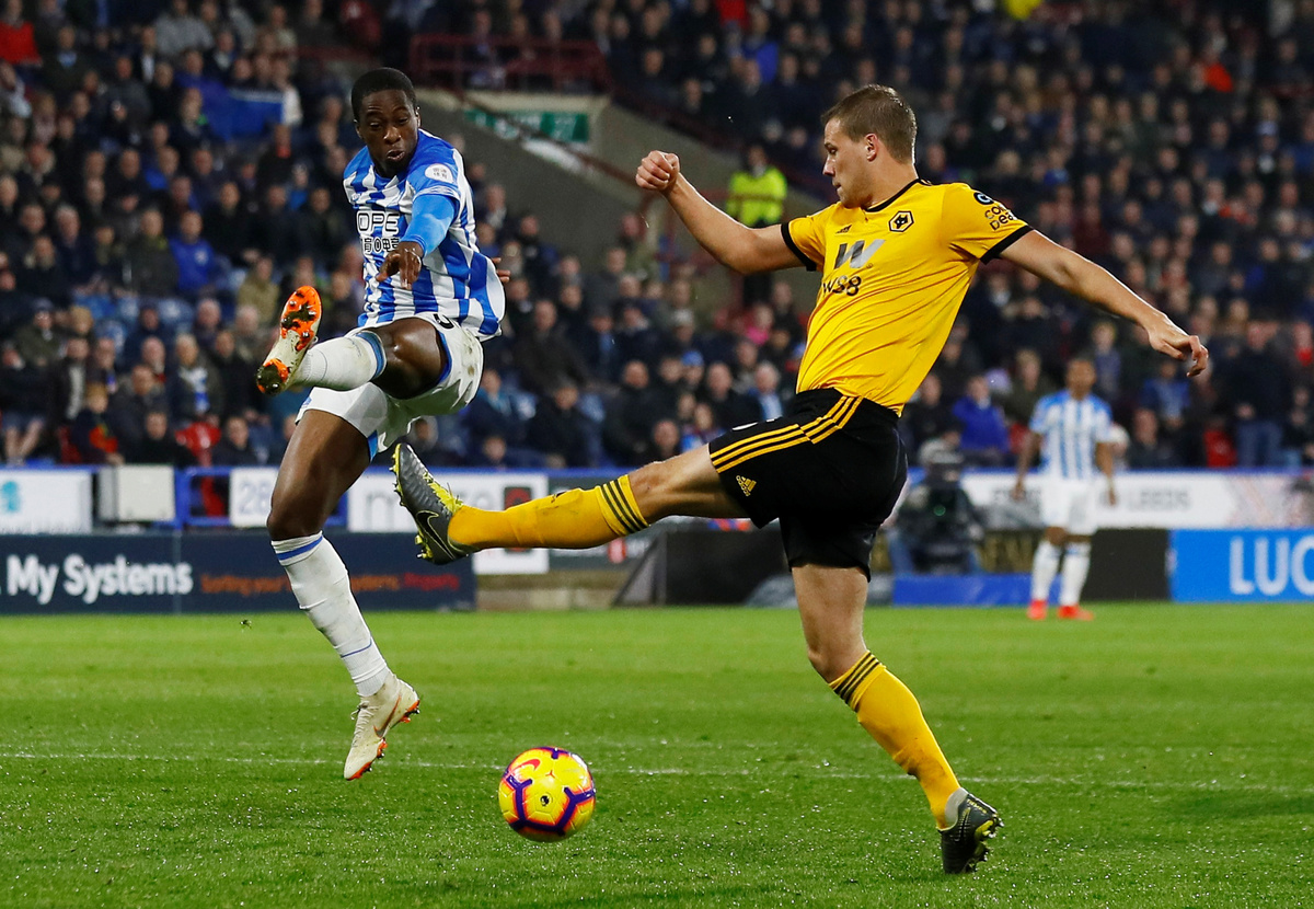 Soccer Football - Premier League - Huddersfield Town v Wolverhampton Wanderers - John Smith's Stadium, Huddersfield, Britain - February 26, 2019 Huddersfield Town's Steve Mounie celebrates scoring their first goal with team mates REUTERS/Peter Powell Soccer Football - Premier League - Huddersfield Town v Wolverhampton Wanderers - John Smith's Stadium, Huddersfield, Britain - February 26, 2019 Wolverhampton Wanderers' Jonny Castro in action with and Huddersfield Town's Jonathan Hogg and Juninho Bacuna Action Images via Reuters/Jason Cairnduff Soccer Football - Premier League - Huddersfield Town v Wolverhampton Wanderers - John Smith's Stadium, Huddersfield, Britain - February 26, 2019 Huddersfield Town's Steve Mounie scores their first goal Action Images via Reuters/Jason Cairnduff Soccer Football - Premier League - Huddersfield Town v Wolverhampton Wanderers - John Smith's Stadium, Huddersfield, Britain - February 26, 2019 Wolverhampton Wanderers' Ruben Neves in action with Huddersfield Town's Jonathan Hogg REUTERS/Peter Powell Soccer Football - Premier League - Huddersfield Town v Wolverhampton Wanderers - John Smith's Stadium, Huddersfield, Britain - February 26, 2019 Huddersfield Town's Karlan Ahearne-Grant in action with Wolverhampton Wanderers' Willy Boly REUTERS/Peter Powell Soccer Football - Premier League - Huddersfield Town v Wolverhampton Wanderers - John Smith's Stadium, Huddersfield, Britain - February 26, 2019 Huddersfield Town's Demeaco Duhaney in action with Wolverhampton Wanderers' Jonny Castro Action Images via Reuters/Jason Cairnduff Soccer Football - Premier League - Huddersfield Town v Wolverhampton Wanderers - John Smith's Stadium, Huddersfield, Britain - February 26, 2019 Huddersfield Town's Jonathan Hogg in action with Wolverhampton Wanderers' Matt Doherty Action Images via Reuters/Jason Cairnduff Soccer Football - Premier League - Huddersfield Town v Wolverhampton Wanderers - John Smith's Stadium, Huddersfield, Britain - February 26, 2019 Huddersfield Town's Steve Mounie celebrates scoring their first goal with team mates REUTERS/Peter Powell Soccer Football - Premier League - Huddersfield Town v Wolverhampton Wanderers - John Smith's Stadium, Huddersfield, Britain - February 26, 2019 Huddersfield Town's Karlan Ahearne-Grant in action with Wolverhampton Wanderers' Ryan Bennett REUTERS/Peter Powell Soccer Football - Premier League - Huddersfield Town v Wolverhampton Wanderers - John Smith's Stadium, Huddersfield, Britain - February 26, 2019 Wolverhampton Wanderers' Raul Jimenez shoots at goal REUTERS/Peter Powell Soccer Football - Premier League - Huddersfield Town v Wolverhampton Wanderers - John Smith's Stadium, Huddersfield, Britain - February 26, 2019 Huddersfield Town's Philip Billing in action with Wolverhampton Wanderers' Raul Jimenez Action Images via Reuters/Jason Cairnduff Soccer Football - Premier League - Huddersfield Town v Wolverhampton Wanderers - John Smith's Stadium, Huddersfield, Britain - February 26, 2019 Huddersfield Town's Terence Kongolo in action with Wolverhampton Wanderers' Ryan Bennett Action Images via Reuters/Jason Cairnduff Soccer Football - Premier League - Huddersfield Town v Wolverhampton Wanderers - John Smith's Stadium, Huddersfield, Britain - February 26, 2019 Wolverhampton Wanderers' Raul Jimenez in action with Huddersfield Town's Terence Kongolo Action Images via Reuters/Jason Cairnduff