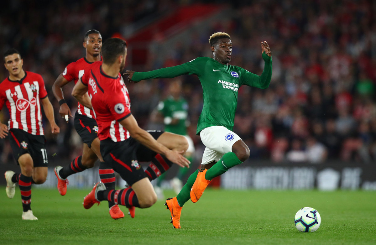 Soccer Football - Premier League - Southampton v Brighton & Hove Albion - St Mary's Stadium, Southampton, Britain - September 17, 2018 Brighton's Yves Bissouma in action with Southampton's Wesley Hoedt REUTERS/Hannah McKay