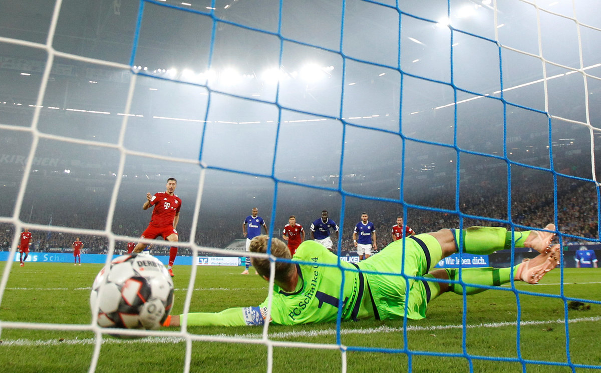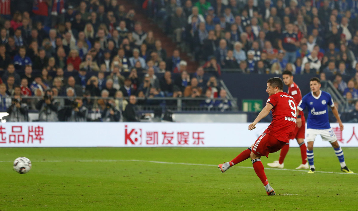 Soccer Football - Bundesliga - Schalke 04 v Bayern Munich - Veltins-Arena, Gelsenkirchen, Germany - September 22, 2018 Bayern Munich's Robert Lewandowski scores their second goal from the penalty spot REUTERS/Leon Kuegeler DFL regulations prohibit any use of photographs as image sequences and/or quasi-video