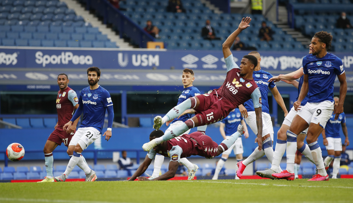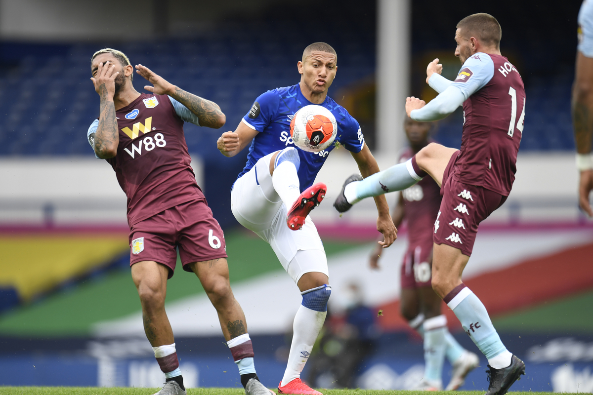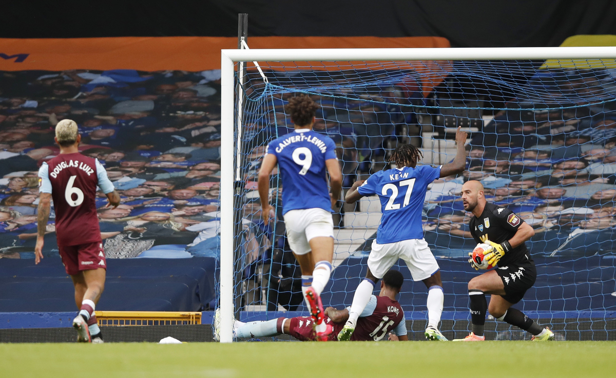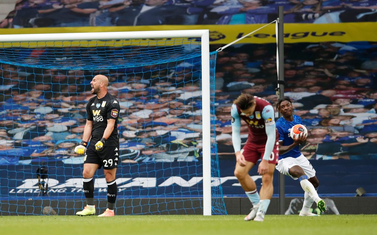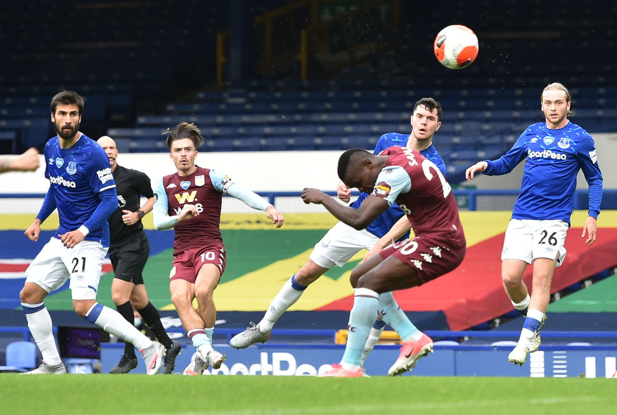 Soccer Football - Premier League - Everton v Aston Villa - Goodison Park, Liverpool, Britain - July 16, 2020 Aston Villa's Conor Hourihane in action with Everton's Bernard, as play resumes behind closed doors following the outbreak of the coronavirus disease (COVID-19) Pool via REUTERS/Peter Powell Soccer Football - Premier League - Everton v Aston Villa - Goodison Park, Liverpool, Britain - July 16, 2020 Everton's Richarlison in action with Aston Villa's Douglas Luiz, as play resumes behind closed doors following the outbreak of the coronavirus disease (COVID-19) Pool via REUTERS/Peter Powell Soccer Football - Premier League - Everton v Aston Villa - Goodison Park, Liverpool, Britain - July 16, 2020 Aston Villa's Mbwana Samatta in action with Everton's Michael Keane, as play resumes behind closed doors following the outbreak of the coronavirus disease (COVID-19) Pool via REUTERS/Clive Brunskill Soccer Football - Premier League - Everton v Aston Villa - Goodison Park, Liverpool, Britain - July 16, 2020 Everton's Theo Walcott in action with Aston Villa's Jack Grealish, as play resumes behind closed doors following the outbreak of the coronavirus disease (COVID-19) Pool via REUTERS/Clive Brunskill Soccer Football - Premier League - Everton v Aston Villa - Goodison Park, Liverpool, Britain - July 16, 2020 Everton's Mason Holgate after sustaining an injury, as play resumes behind closed doors following the outbreak of the coronavirus disease (COVID-19) Pool via REUTERS/Dave Thompson Soccer Football - Premier League - Everton v Aston Villa - Goodison Park, Liverpool, Britain - July 16, 2020 Aston Villa's Pepe Reina reacts after Everton's Theo Walcott scored their first goal, as play resumes behind closed doors following the outbreak of the coronavirus disease (COVID-19) Pool via REUTERS/Clive Brunskill Soccer Football - Premier League - Everton v Aston Villa - Goodison Park, Liverpool, Britain - July 16, 2020 Aston Villa's Jack Grealish in action with Everton's Seamus Coleman, as play resumes behind closed doors following the outbreak of the coronavirus disease (COVID-19) Pool via REUTERS/Peter Powell Soccer Football - Premier League - Everton v Aston Villa - Goodison Park, Liverpool, Britain - July 16, 2020 Aston Villa's Jack Grealish shoots at goal, as play resumes behind closed doors following the outbreak of the coronavirus disease (COVID-19) Pool via REUTERS/Clive Brunskill Soccer Football - Premier League - Everton v Aston Villa - Goodison Park, Liverpool, Britain - July 16, 2020 Aston Villa's Tyrone Mings in action with Everton's Dominic Calvert-Lewin, as play resumes behind closed doors following the outbreak of the coronavirus disease (COVID-19) Pool via REUTERS/Dave Thompson Soccer Football - Premier League - Everton v Aston Villa - Goodison Park, Liverpool, Britain - July 16, 2020 Everton's Theo Walcott (not pictured) scores their first goal, as play resumes behind closed doors following the outbreak of the coronavirus disease (COVID-19) Pool via REUTERS/Clive Brunskill Soccer Football - Premier League - Everton v Aston Villa - Goodison Park, Liverpool, Britain - July 16, 2020 Everton's Dominic Calvert-Lewin in action with Aston Villa's Matt Targett, as play resumes behind closed doors following the outbreak of the coronavirus disease (COVID-19) Pool via REUTERS/Clive Brunskill Soccer Football - Premier League - Everton v Aston Villa - Goodison Park, Liverpool, Britain - July 16, 2020 Aston Villa's Anwar El Ghazi shoots at goal, as play resumes behind closed doors following the outbreak of the coronavirus disease (COVID-19) Pool via REUTERS/Peter Powell Soccer Football - Premier League - Everton v Aston Villa - Goodison Park, Liverpool, Britain - July 16, 2020 Aston Villa's Ezri Konsa celebrates scoring their first goal with teammates, as play resumes behind closed doors following the outbreak of the coronavirus disease (COVID-19) Pool via REUTERS/Peter Powell Soccer Football - Premier League - Everton v Aston Villa - Goodison Park, Liverpool, Britain - July 16, 2020 Aston Villa's Jack Grealish shoots at goal, as play resumes behind closed doors following the outbreak of the coronavirus disease (COVID-19) Pool via REUTERS/Peter Powell Soccer Football - Premier League - Everton v Aston Villa - Goodison Park, Liverpool, Britain - July 16, 2020 Aston Villa's Keinan Davis in action with Everton's Andre Gomes, as play resumes behind closed doors following the outbreak of the coronavirus disease (COVID-19) Pool via REUTERS/Peter Powell