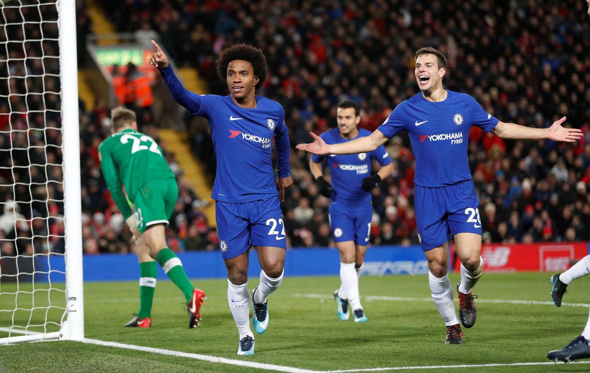Just two minutes after coming on as a late substitute at Anfield, Willian whipped in an attempted cross from the right which floated over Liverpool keeper Simon Mignolet and into the net.