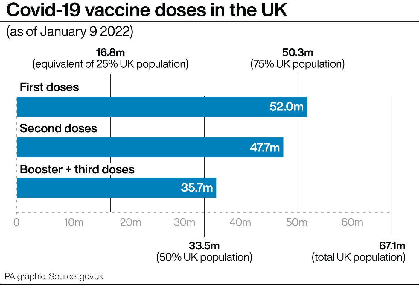 The list has been calculated by the PA news agency using data published on January 10 on the Government’s coronavirus dashboard.