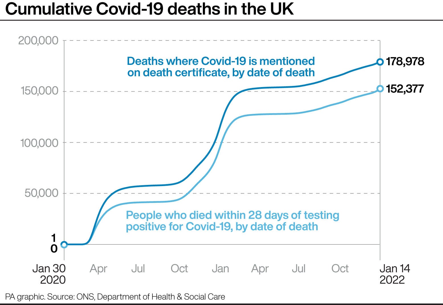 The list has been calculated by the PA news agency using data published on January 25 on the Government’s coronavirus dashboard.