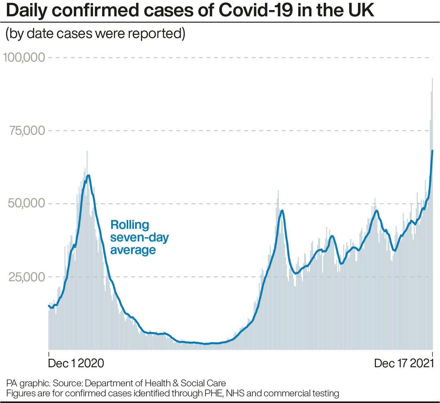 The figures, for the seven days to December 13, are based on the number of people who have tested positive for Covid-19 in either a lab-reported or rapid lateral flow test, by specimen date.