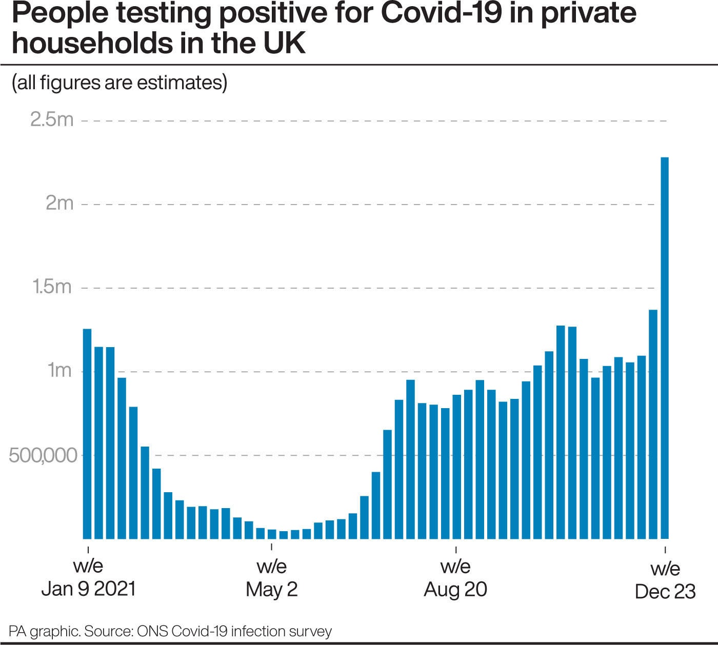 The figures, for the seven days to December 27, are based on the number of people who have tested positive for Covid-19 in a lab-reported test, plus, in England, positive rapid lateral flow tests that do not have a negative confirmatory lab-based polymerase chain reaction (PCR) test within 72 hours.