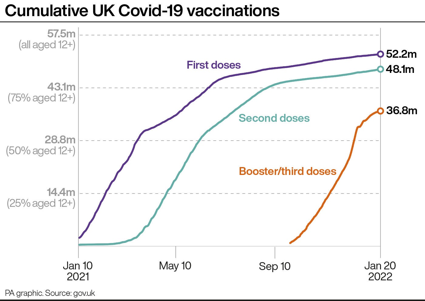 The list has been calculated by the PA news agency using data published on January 21 on the Government’s coronavirus dashboard.