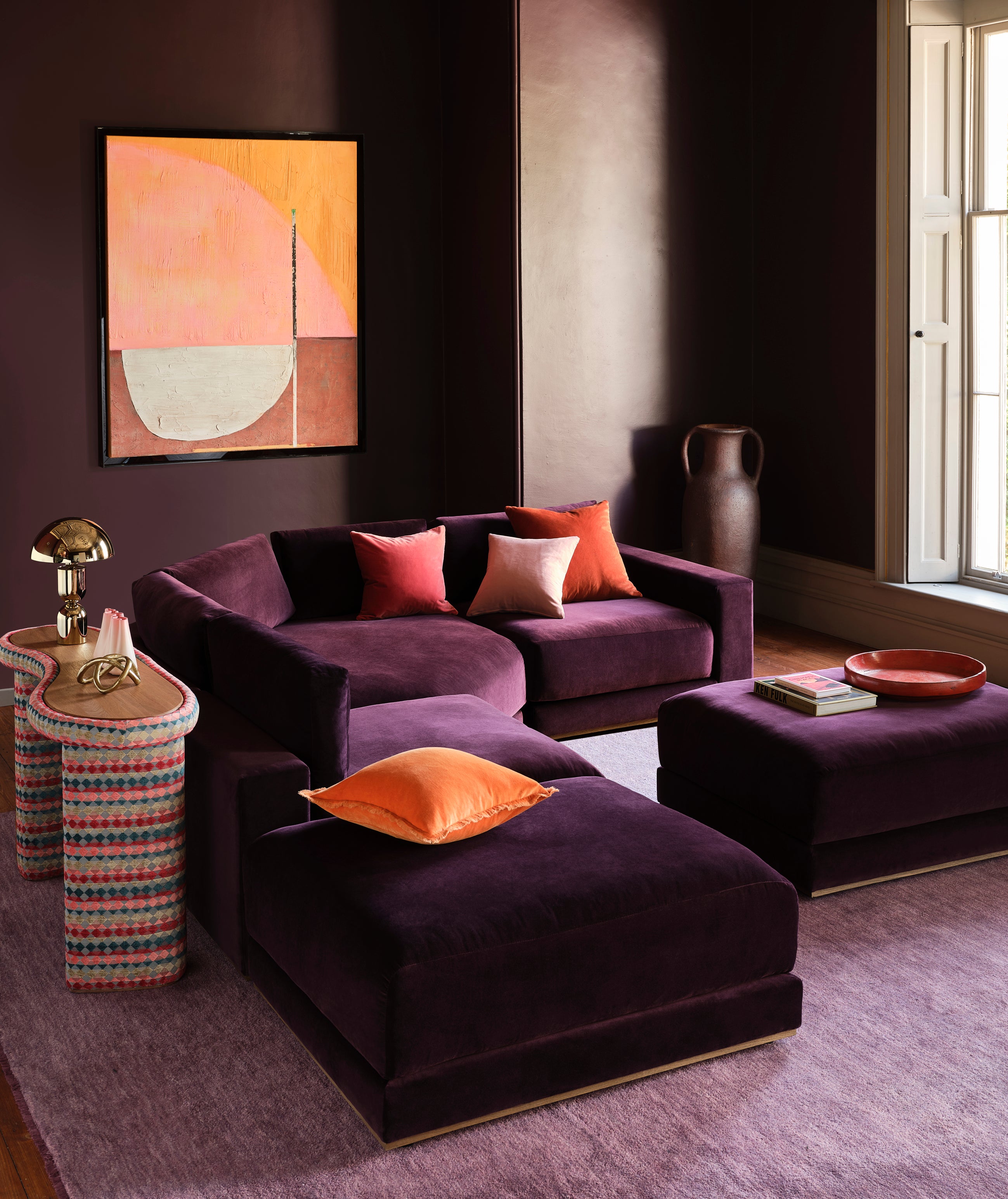 She says deep-pile floor treatments and rich velvet furniture in warm terracottas and pinks add an instantly cocooning and grounded feel, often lacking through colder months.