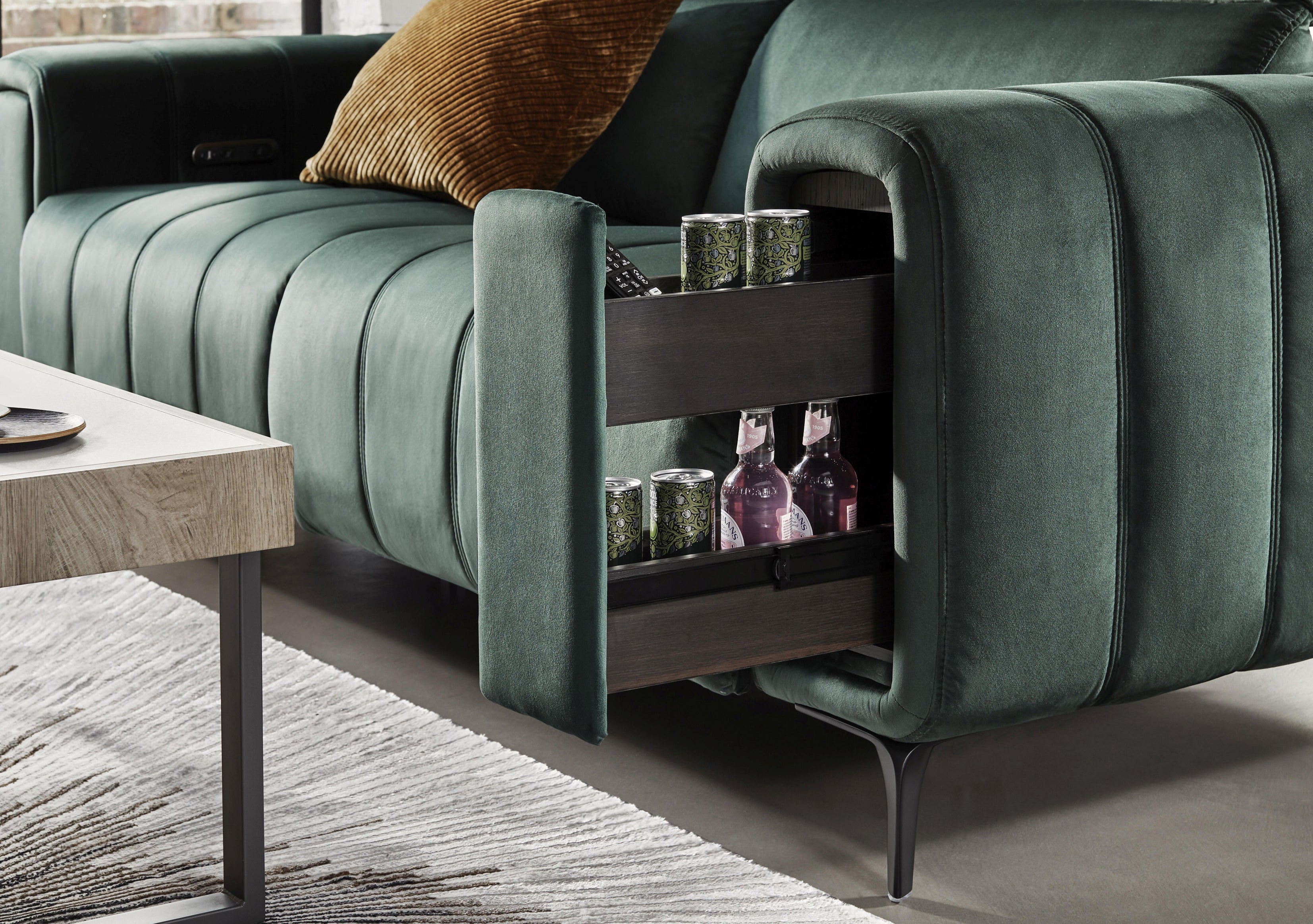 Moreover, with clever extras such as space for keeping your favourite spirit or TV tipple close to hand, you never have to worry about missing any highlights… and having to catch up using your streaming service.