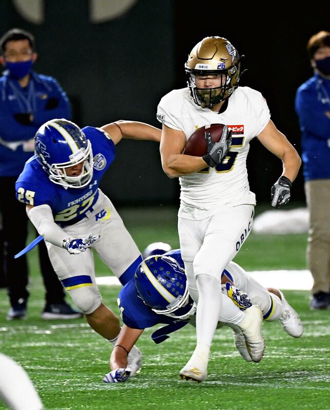 Obic came right back and marched 59 yards in seven plays, with Mochizuki going in from the 8 on a inside reverse. That play was set up by a 24-yard pass from Laughrea to Takahiro Nozaki, who would also haul in a 53-yard touchdown pass in the third quarter and was named the game MVP.
