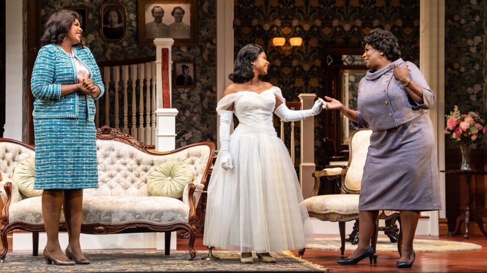 But adhering to white-glove tradition turns out to be the least of doyenne Grace’s worries. From across town, working-class single mother Alpha Campbell-Jackson (a formidable Tyla Abercrumbie of “The Chi”) and her daughter Lillie (Felicia Oduh, believably giddy in love and stressed by the weight of familial expectations) come bearing secrets that will reshape both families for generations to follow.