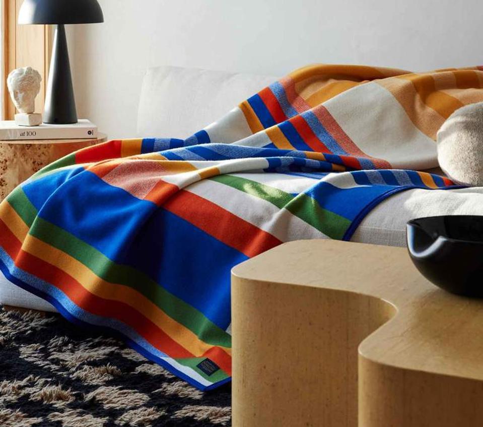Calling all Brooklinen and Pendelton fans! The two brands have just teamed up to launch a brand new collection that includes a Paths Blanket that blends Pendleton’s signatures weaves with Brooklinen’s superior quality. Crafted in the United States, the blanket is made with a pure virgin wool and cotton blend and finished in bright geometric prints that will look great tossed on your couch or draped across your bed. Want something a little more muted? There’s also a black and white option in Pendelton’s classic geometric pattern.