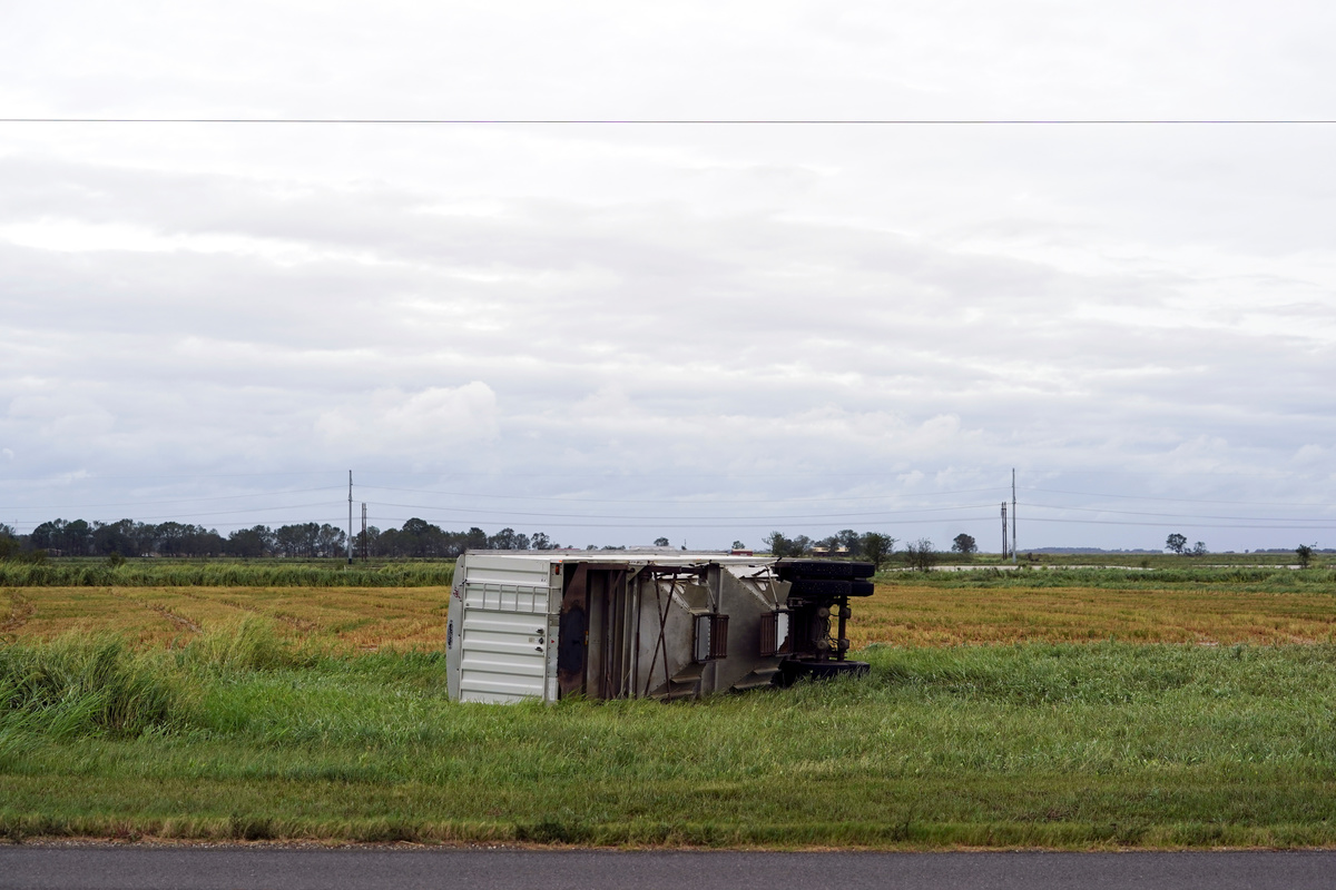 The Louisiana Farm Bureau said some sugarcane was blown over but production would be only minimally impacted as cane tops were not broken. Most rice fields had also been harvested ahead of the storm, Communications Director Avery Davidson said.