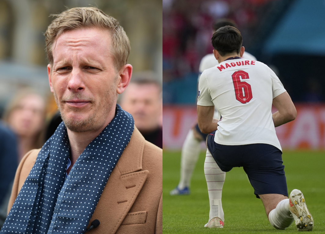 (Picture: Ian West/PA/ FRANK AUGSTEIN/POOL/AFP via Getty Images)Laurence Fox has once again decided to criticise the England football team for taking the knee just moments before they kicked off in their huge Euro 2020 semi-final against Denmark.