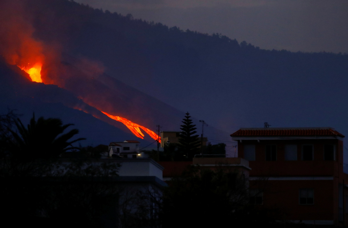 Lava flowed from a newly opened crack in the Cumbre Vieja volcano on Spain's La Palma on Friday, carving a different path from previous flows and raising fears of more destruction, while fine ash forced islanders to don masks and goggles.