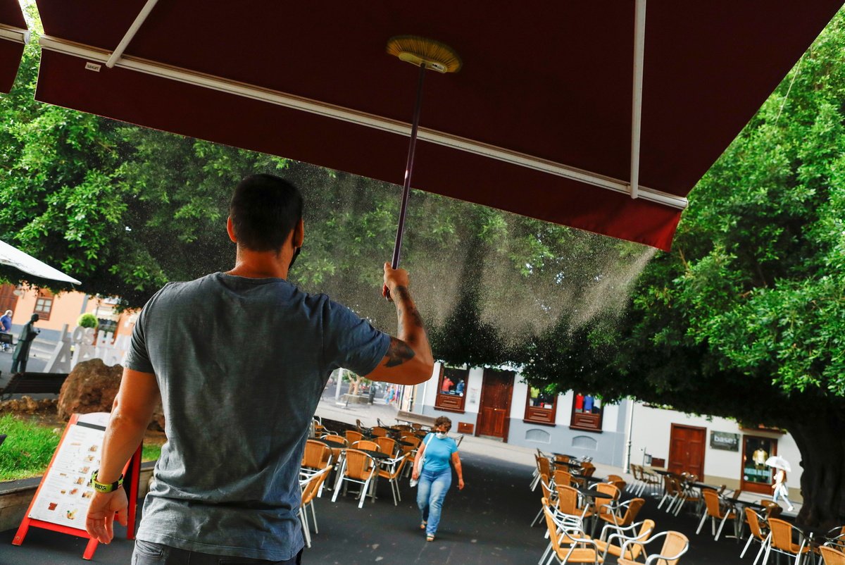 "Last night the ash was irritating my eyes a lot, I had to use eye drops and my skin was stinging," said Matilde Gonzalez Tavarez, a 45-year-old nursing assistant visiting her mother at a care home in Los Llanos.
