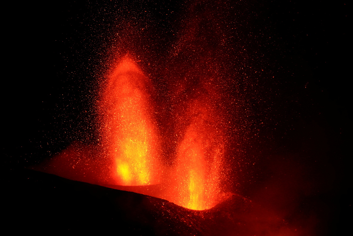 A river of red-hot lava snaked downhill from the new fissure, which burst open late on Thursday around 400 metres (1,300 ft) to the north of the primary eruption site.