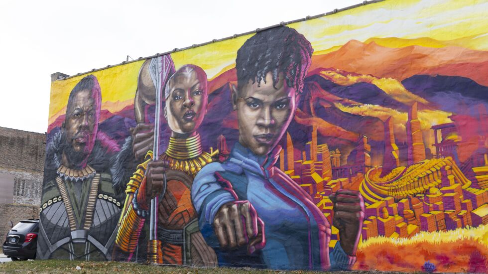 Fans of Marvel’s “Black Panther” movies don’t have to go to a theater to see the franchise’s characters. They also can see them in two murals on the South Side.
