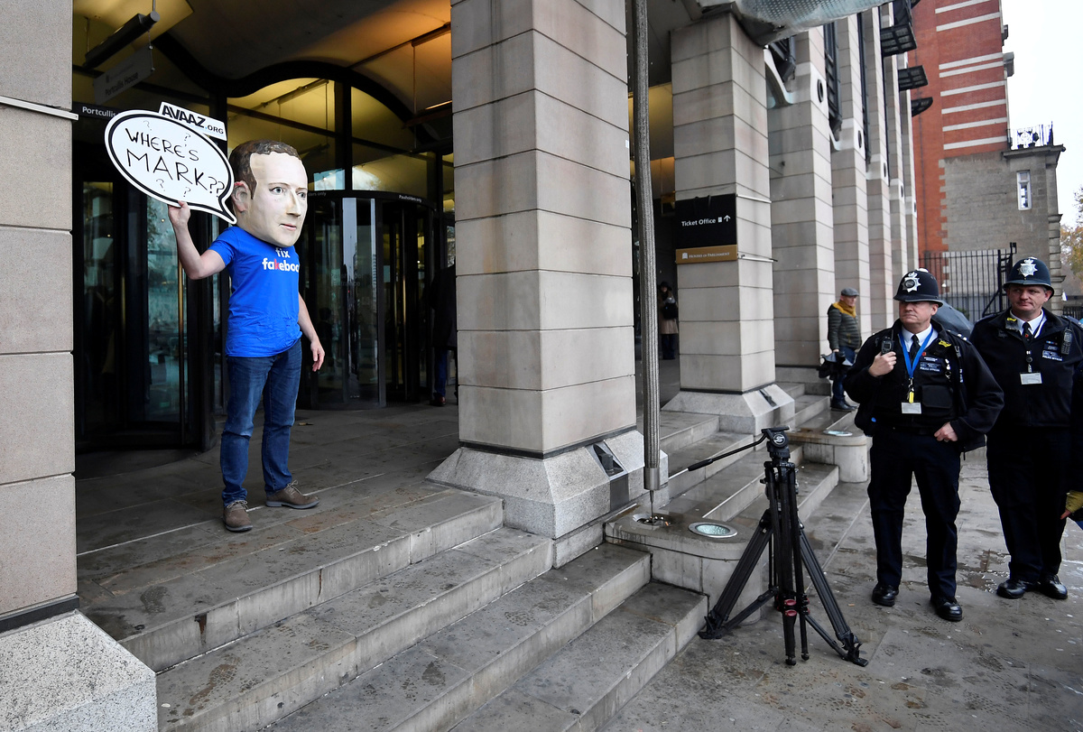 "So Mr Zuckerberg's decision not to appear here at Westminster (Britain's parliament) to me speaks volumes," he said, later suggesting Facebook could be broken up to help address the issues.