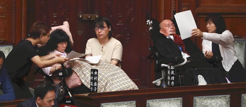 Yasuhiko Funago, who has amyotrophic lateral sclerosis (ALS), and Eiko Kimura, who is paralyzed below the neck, won seats for the first time in the latest upper house election as members of new opposition party Reiwa Shinsengumi. Both use home-visit nursing care under the law on comprehensive support for persons with disabilities. However, a lawmaker's activities are regarded as "work," so the system does not cover the costs of their care during this time.