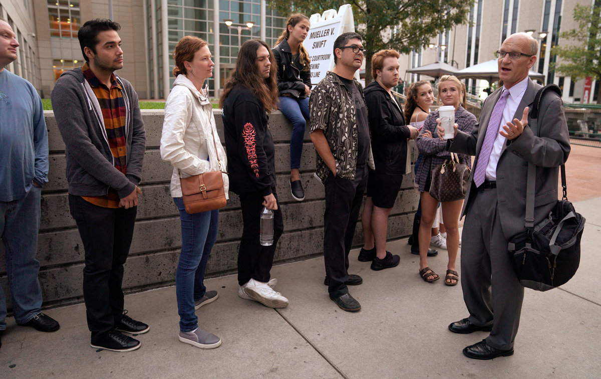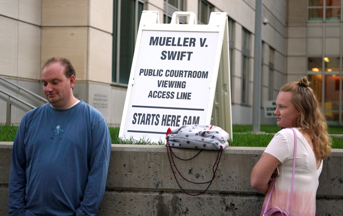 But Swift was firm on the witness stand, saying that there was no question in her mind that Mueller had intentionally slipped his hand under her skirt to clutch her bare bottom. Her attorney, Douglas Baldridge, said during his closing remarks that Swift was seeking only $1 in damages because she had no desire to bankrupt Mueller, but only wanted to send a message.