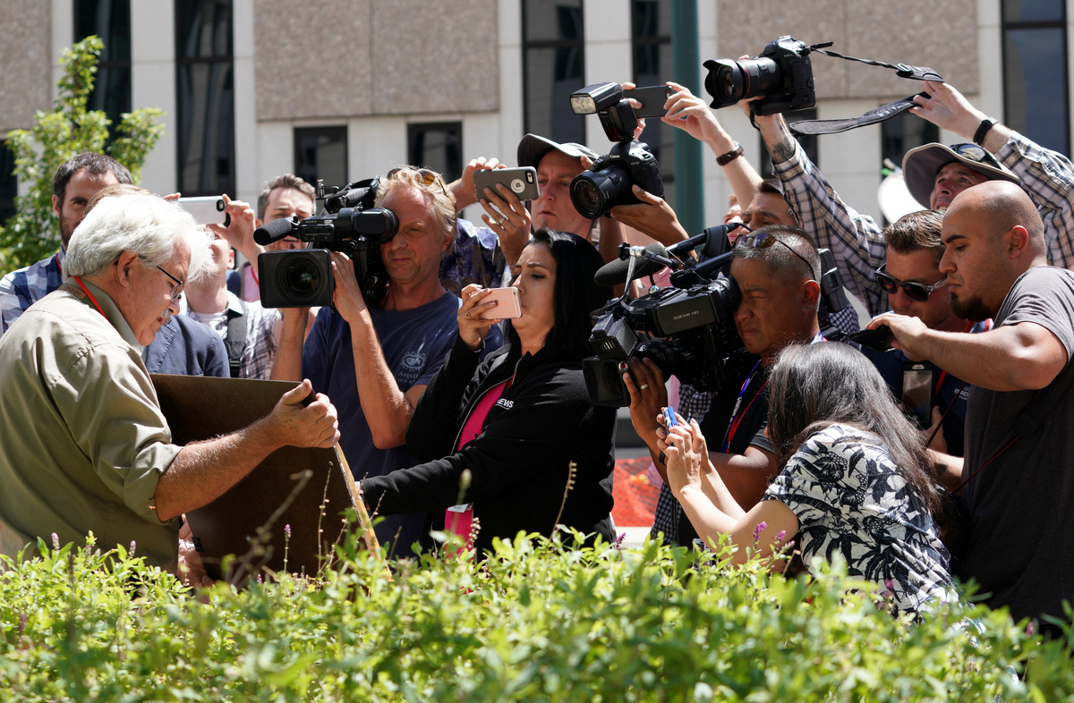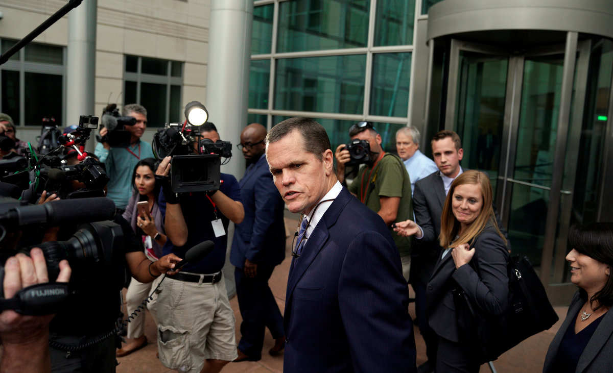 Taylor Swift attorney Douglas Baldridge speaks to the media after the verdict came in at Denver Federal Court in the Taylor Swift groping trial in Denver U.S. August 14, 2017. REUTERS/Rick Wilking