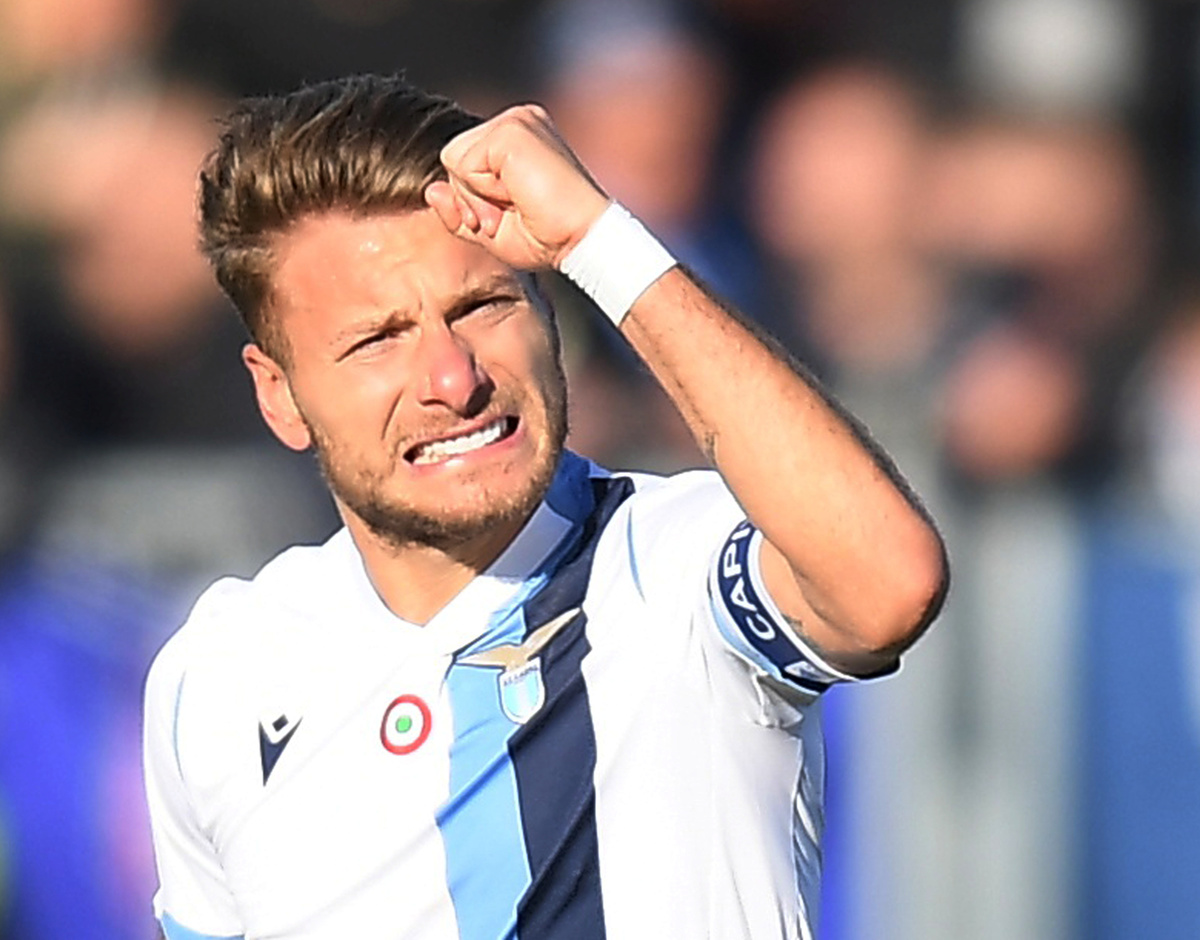 Two goals from Serie A's leading scorer Ciro Immobile, the second in stoppage time, gave third-placed Lazio a dramatic 2-1 win at 10-man Brescia on Sunday as they chalked up their ninth successive league victory.