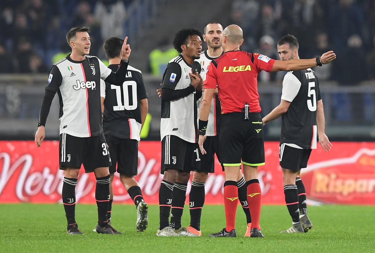 The game turned in the 69th minute when Juve right back Cuadrado clattered into Manuel Lazzari after he was sent clear by Luis Alberto's pass and the referee dismissed the Colombian after viewing the incident on the pitchside monitor.