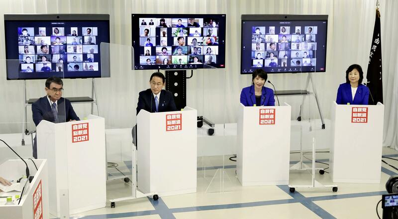 Thursday's debate was the election's first official campaign event with an online audience, comprising members of the public and the LDP, who were able to submit questions to the candidates. Such events are being held as candidates have canceled campaign visits to regional areas due to the coronavirus pandemic.