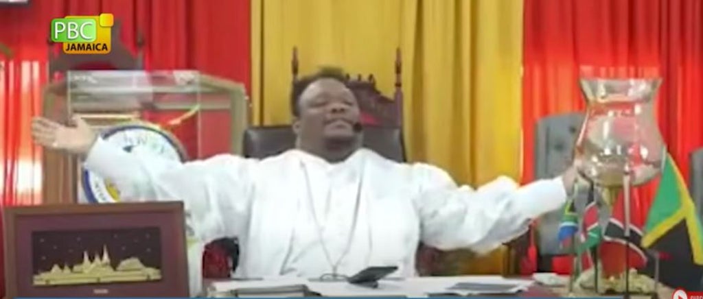 The police barged inside his church in Montego Bay after they were tipped off to human sacrifices being conducted by more than 100 people, all dressed in white robes.