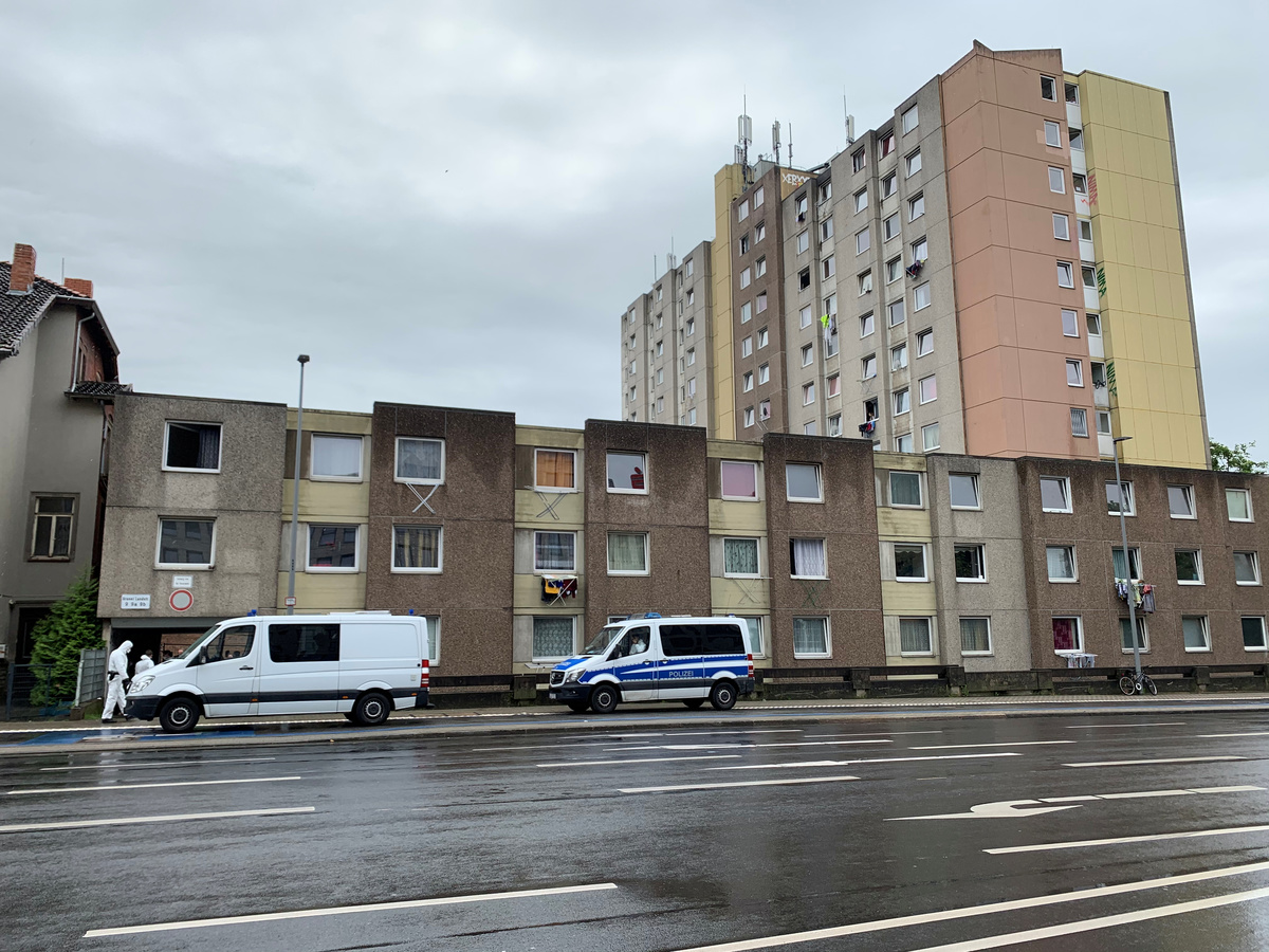 FILE PHOTO: A general view of a block of flats that has been quarantined after dozens of residents tested positive for the coronavirus disease (COVID-19), in Goettingen near Hannover June 18, 2020. REUTERS/Annkathrin Weis