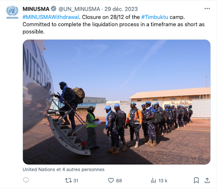 At the end of 2023, the UN Multidimensional Integrated Stabilization Mission in Mali (MINUSMA) concluded its withdrawal at the request of the Malian government. A similar withdrawal process was initiated, then paused, for the UN Organization Stabilization Mission in the Democratic Republic of Congo (MONUSCO).