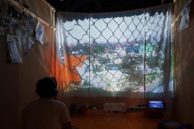 Inside the exhibition space at O.P. Place is a replica of Klong Toey's squatter settlements made from corrugated steel sheets and old wooden planks. One room projects a series of rap songs written and produced by those from the rap music workshop. One room lets visitors wear a piece of clothing that the fashion students designed. One room projects a series of photographs and diary entries by the photography students. And each and every piece of work lends insight to the lives and struggles of the children of the community.